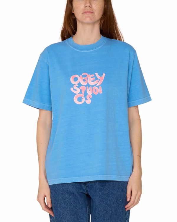 Women OBEY Clothing T-Shirts | STUDIO SPRAY MAXINE PIGMENT T-SHIRT Pigment Azure Blue